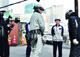 松田:大阪駅前の現場で施工管理を担当している松田実穂です。ここの現場監督です。